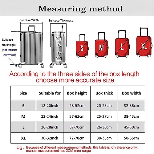 Maten en kleuren: 4 maten beschikbaar voor bijna elke bagage. S: geschikt voor 45-50 cm bagage, M: geschikt voor bagage van 22-24 inch, L: geschikt voor bagage van 66-71 cm, XL: geschikt voor bagage van 76-81 cm. We hebben veel soorten kleuren, je kunt degene kiezen die je leuk vindt. De kleurrijke hoes helpt je ook om je bagage snel te vinden.