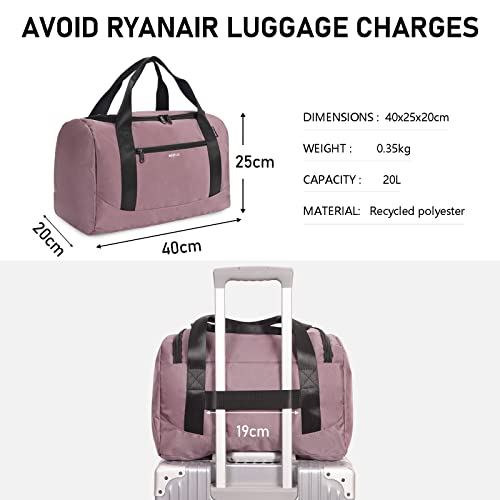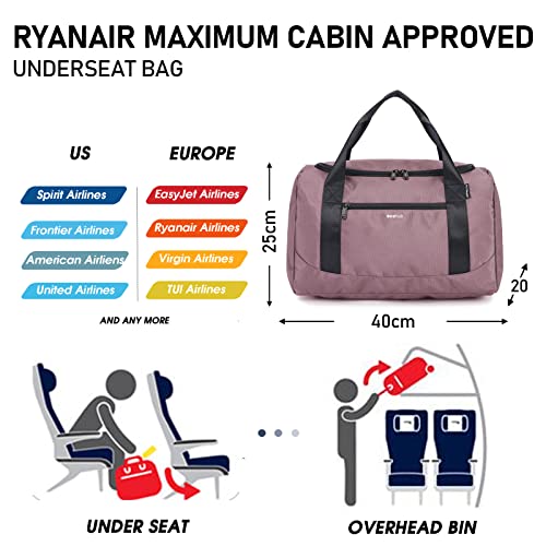 ECOHUB Ryanair handbagage 40x20x25 Onder-stoel cabine tas Reizen handbagage tas Holdall Tas Draagtas Overnachting voor vrouwen en mannen Gerecycleerd PET Eco Vriendschappelijk(Donkerroze)