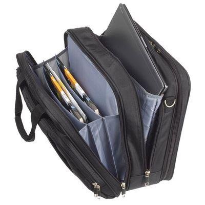 Koffer “cabine” voor het controleren van de afmetingen van de toegestane bagage bij uw vliegtuig. Afmetingen (B x H x D): 40 x 34 x 21 cm. Materiaal: nylon – kleur zwart – gevoerd, uitneembaar en ritsvak voor laptops – ritsvak voor A4-documenten – voorvak met organizer – handgreep – telescoopgreep – verstelbare en afneembare schouderriem met schouderbescherming – ritsvak voor A4-documenten met organizer – handgreep – telescoopgreep – verstelbare en afneembare schouderriem met schouderbescherming.