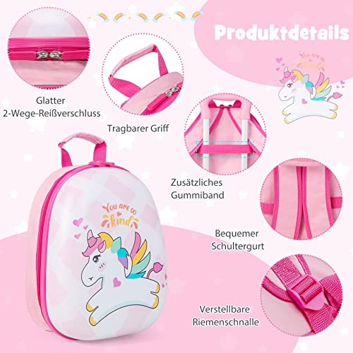 Specification: COSTWAY 2-delige kinderkoffer + rugzak, kindertrolley van kunststof, kinderbagage, kinderkofferset, handbagage, reisbagage, harde koffer voor jongens en meisjes, roze eenhoorns, 12″+16″, kinderkoffer