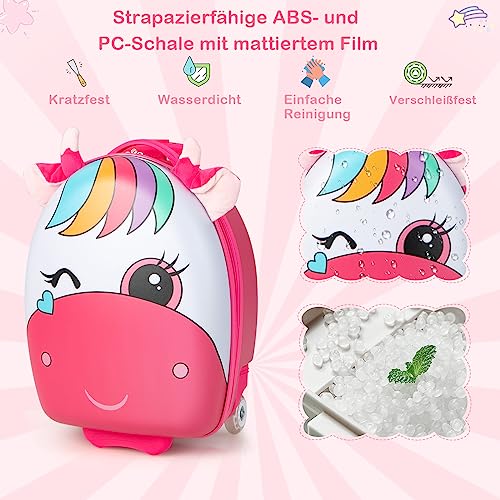 Specification: GOPLUS Kinderkoffer met rugzak, kindertrolley, kinderbagage met wielen, reiskoffer met telescoopgreep, hardcase voor kinderen, kindertrolley, kleurkeuze, roze pony, 16″, Voor kinderen