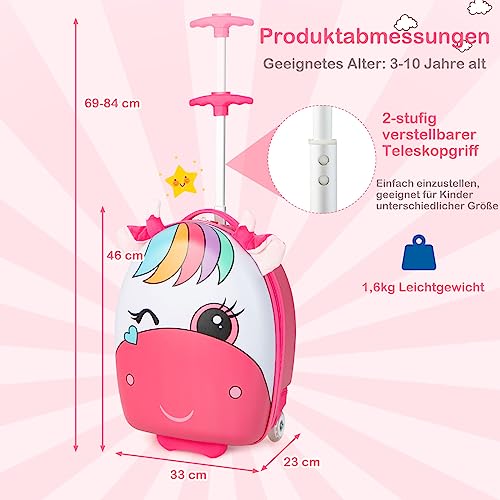 GOPLUS Kinderkoffer met rugzak, kindertrolley, kinderbagage met wielen, reiskoffer met telescoopgreep, hardcase voor kinderen, kindertrolley, kleurkeuze, roze pony, 16″, Voor kinderen