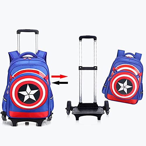Kinderen Bagage Koffers Captain Preschool Rugzak Trolley Schooltas Wielen Rugzak Waterdicht Hand Trekstang Meisje Dagrugzak Student Outdoor Satchel,B-One Size 6 Wheel