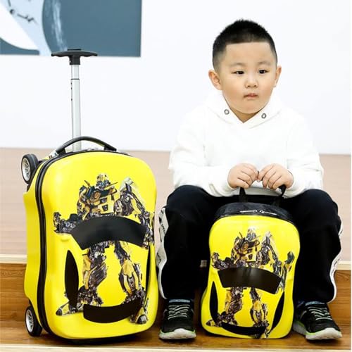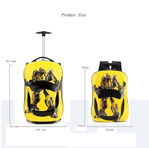Specification: lesulety 2-delige set van universele wiel trolley case schooltas 3D stereo cartoon racing trolley case kinderen trolley koffer cartoon koffer schooltas gift jongen meisje reizen lichtgewicht, geel