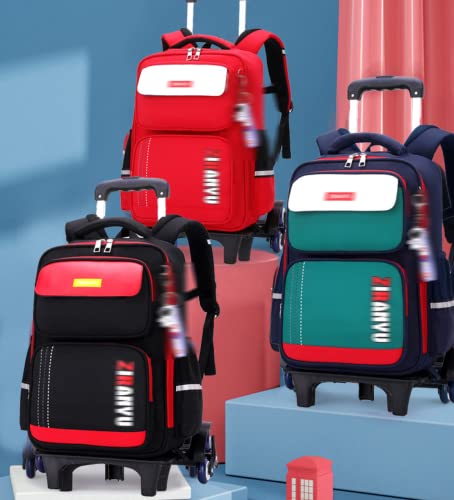 Specification: Waterdichte trolley schooltas,Rugzak op wielen voor kinderen,Basisschool trolley schooltas, afneembare rugzak voor twee doeleinden, groen, twee rondes