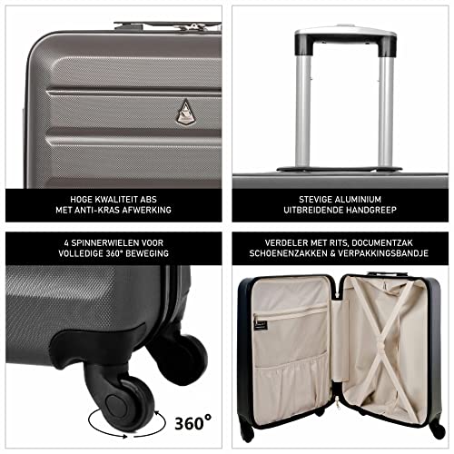 Aerolite EasyJet/British Airways / Jet2 maximumbedrag 4-wielen handbagage lichtgewicht harde schaal boordbagage cabinentrolley reiskoffer trolley koffer, koolgrijs, 56 x 45 x 25, handbagage