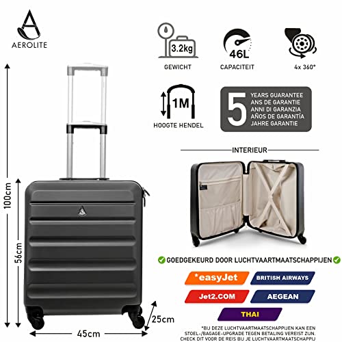 Specification: Aerolite EasyJet/British Airways / Jet2 maximumbedrag 4-wielen handbagage lichtgewicht harde schaal boordbagage cabinentrolley reiskoffer trolley koffer, koolgrijs, 56 x 45 x 25, handbagage