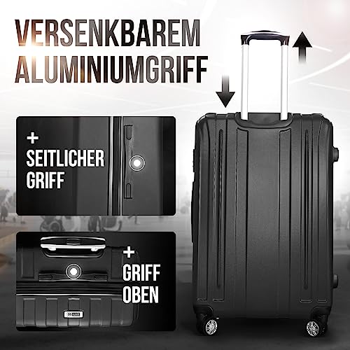 DS-Lux Hoogwaardige reiskoffer, koffer, harde schaal, trolley, rolkoffer, handbagage, ABS-kunststof, met TSA-slot, 4 spinner wielen, (S-M-L-set), zwart, Large, Verpakt met zwenkwielen