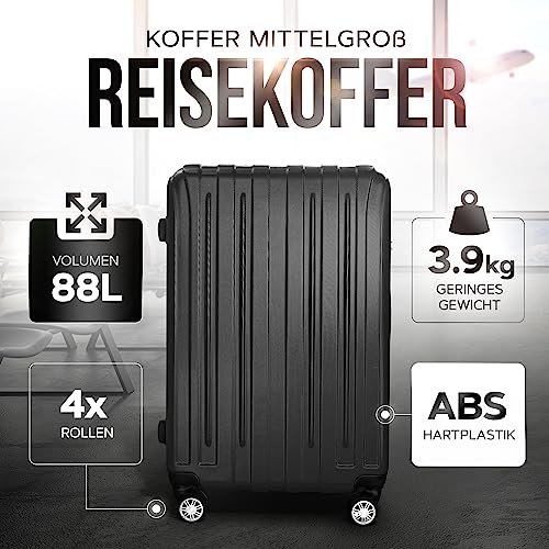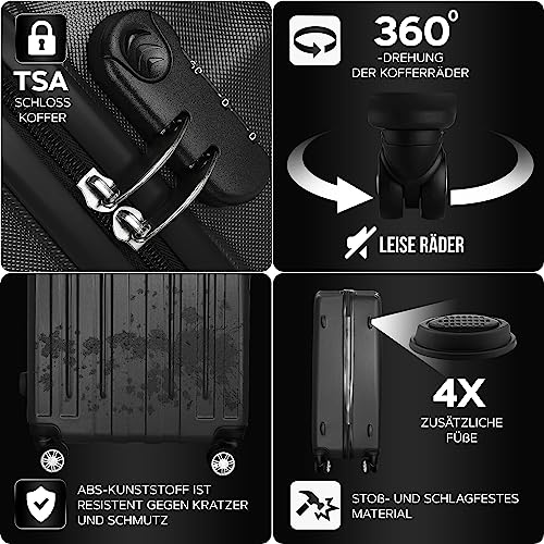 Specification: DS-Lux Hoogwaardige reiskoffer, koffer, harde schaal, trolley, rolkoffer, handbagage, ABS-kunststof, met TSA-slot, 4 spinner wielen, (S-M-L-set), zwart, Large, Verpakt met zwenkwielen