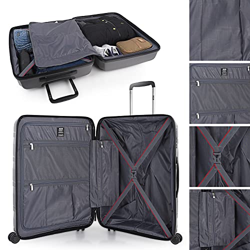 De suitcase set is voorzien van handbagage Geïntegreerd TSA-hangslot. Dubbele schuifrits. Intrekbare handgreep aan de bovenzijde Telescopische handgreep met vergrendelingsknop. USB-poort voor het opladen van apparaten.